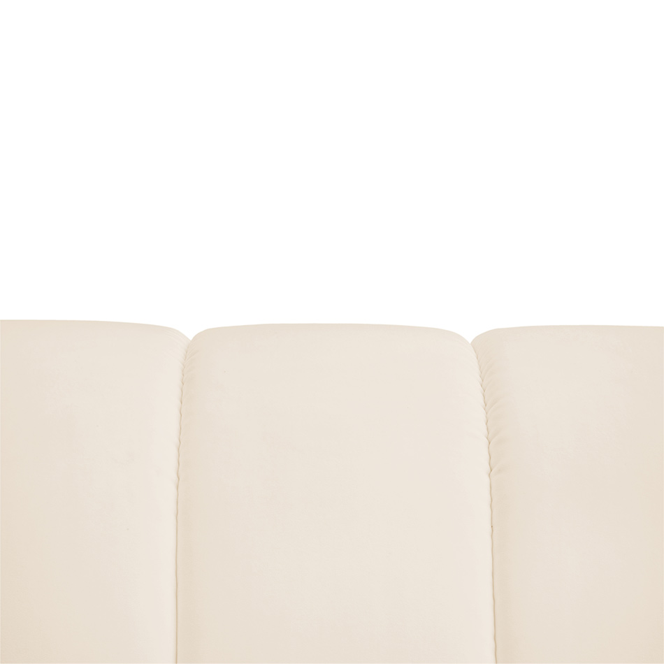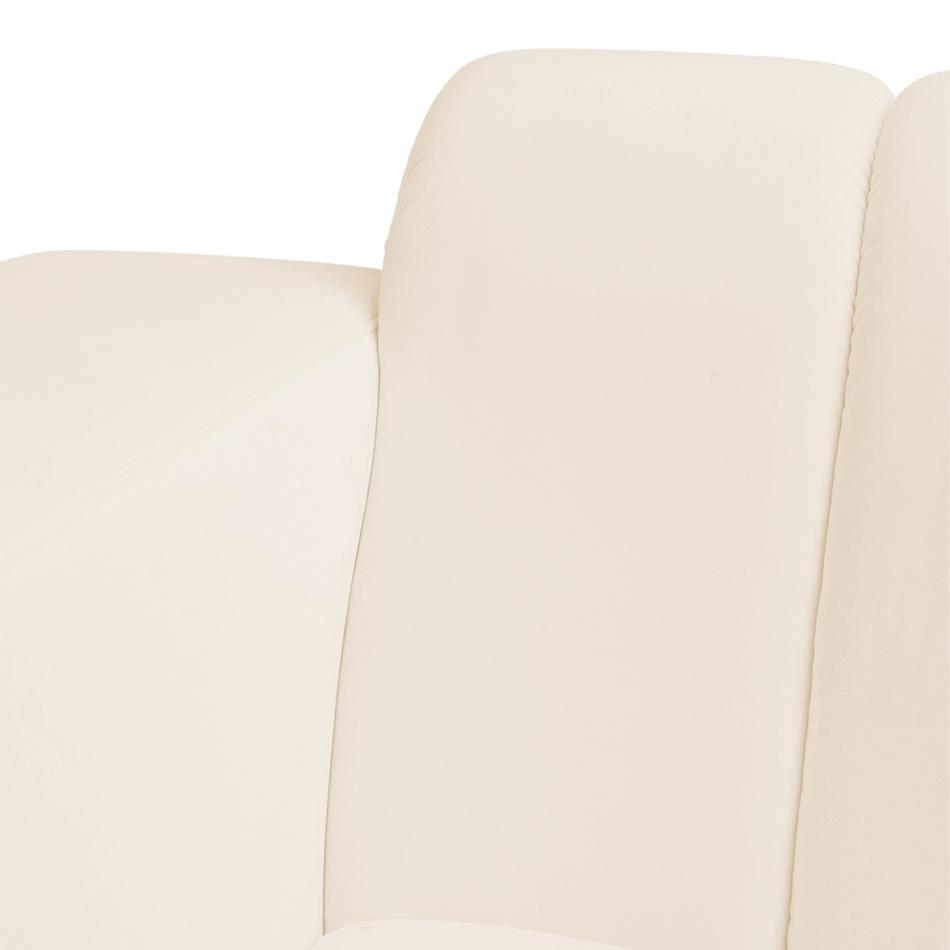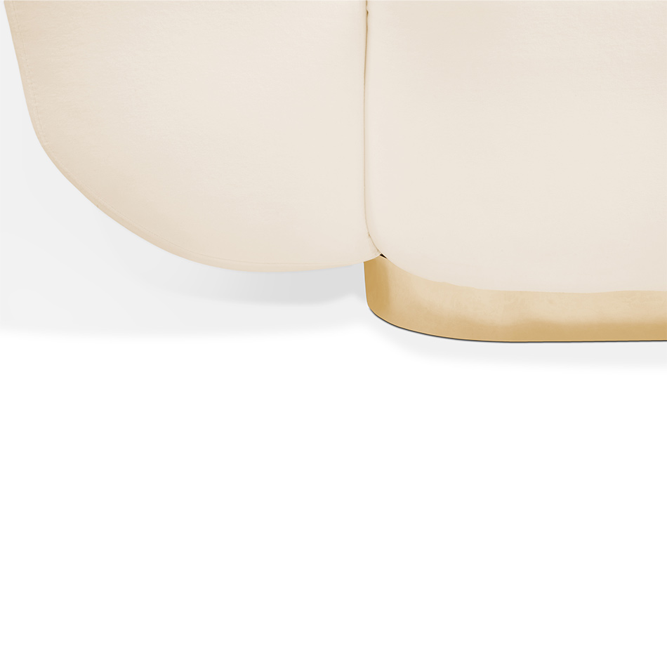 A sofa that combines some details from mid-century style with a contemporary design vision. The base is rectangular but it has a contrasting low back with rounded shapes. Upholstered with sophisticated leather and finished with piping detail, it’s a desirable mid-century modern piece.