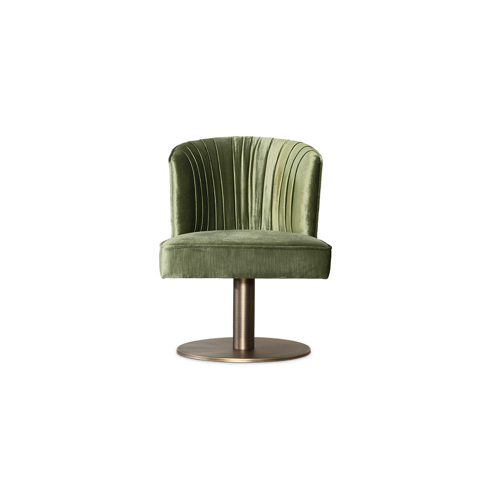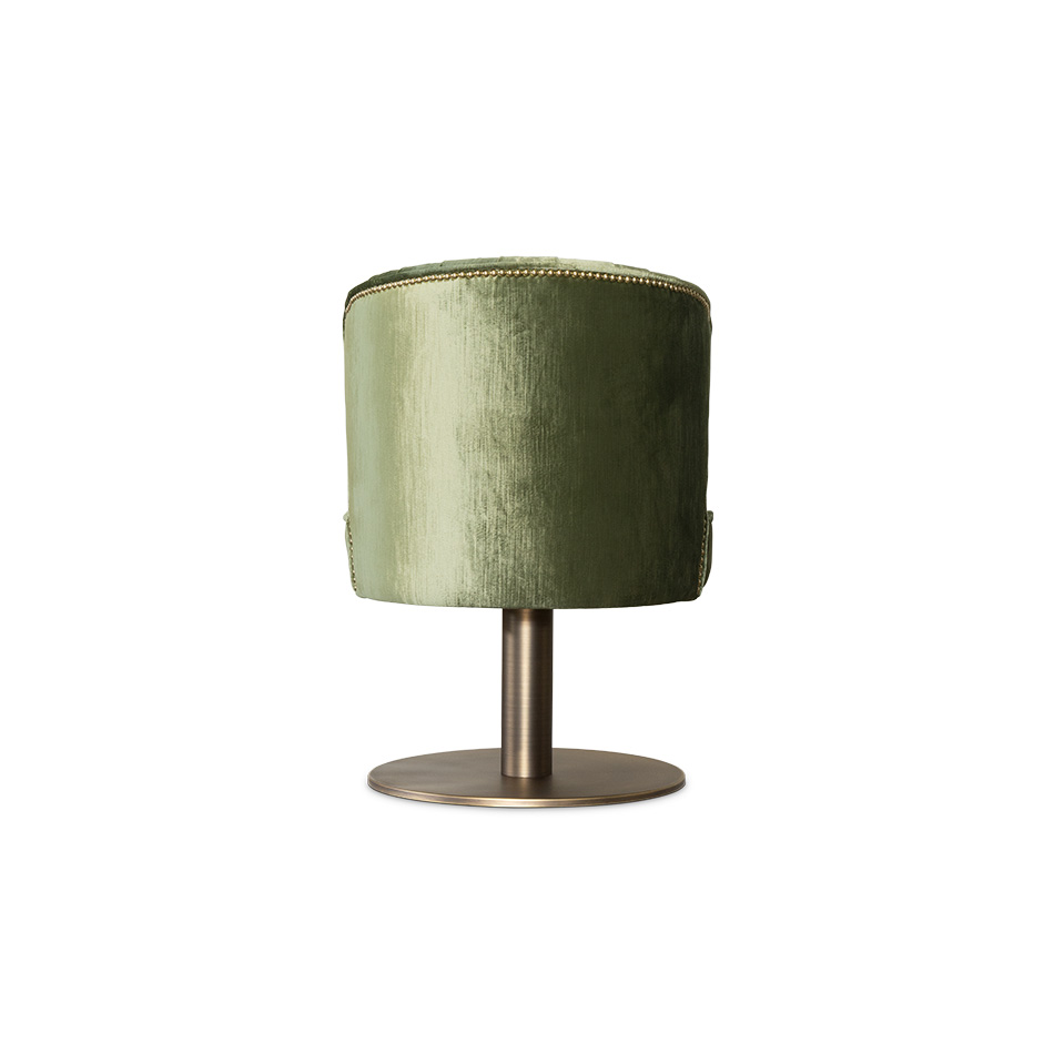 Nuka is a glacier in Alaska, known for its sublime beauty. NUKA Swivel Green Dining Chair was inspired by this magnificent natural monument fitting perfectly any home decor. Upholstered in green velvet with a gold nail trim and a swivel base in brushed aged brass matte, this green velvet swivel dining chair will make a statement in any dining room.