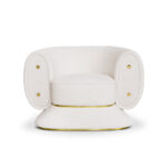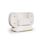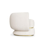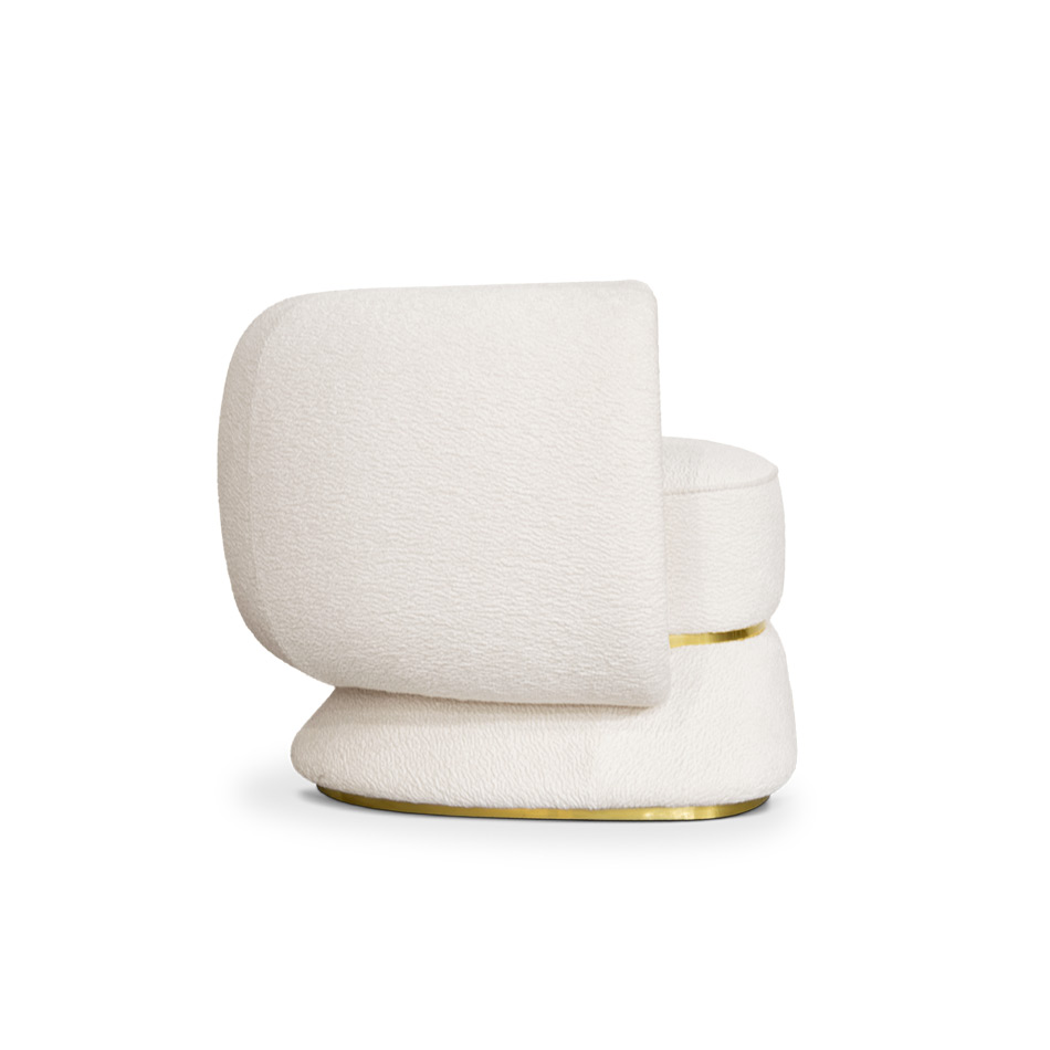 This mid-century inspired single sofa proves that the curved lines in the furniture trend are here to stay. With its comfortable seat and round arms, handmade to showcase Portuguese craftsmanship. Touches of wood in the armrests and lines of shiny metal around the base are the perfect representations of vintage and mid-century furniture.