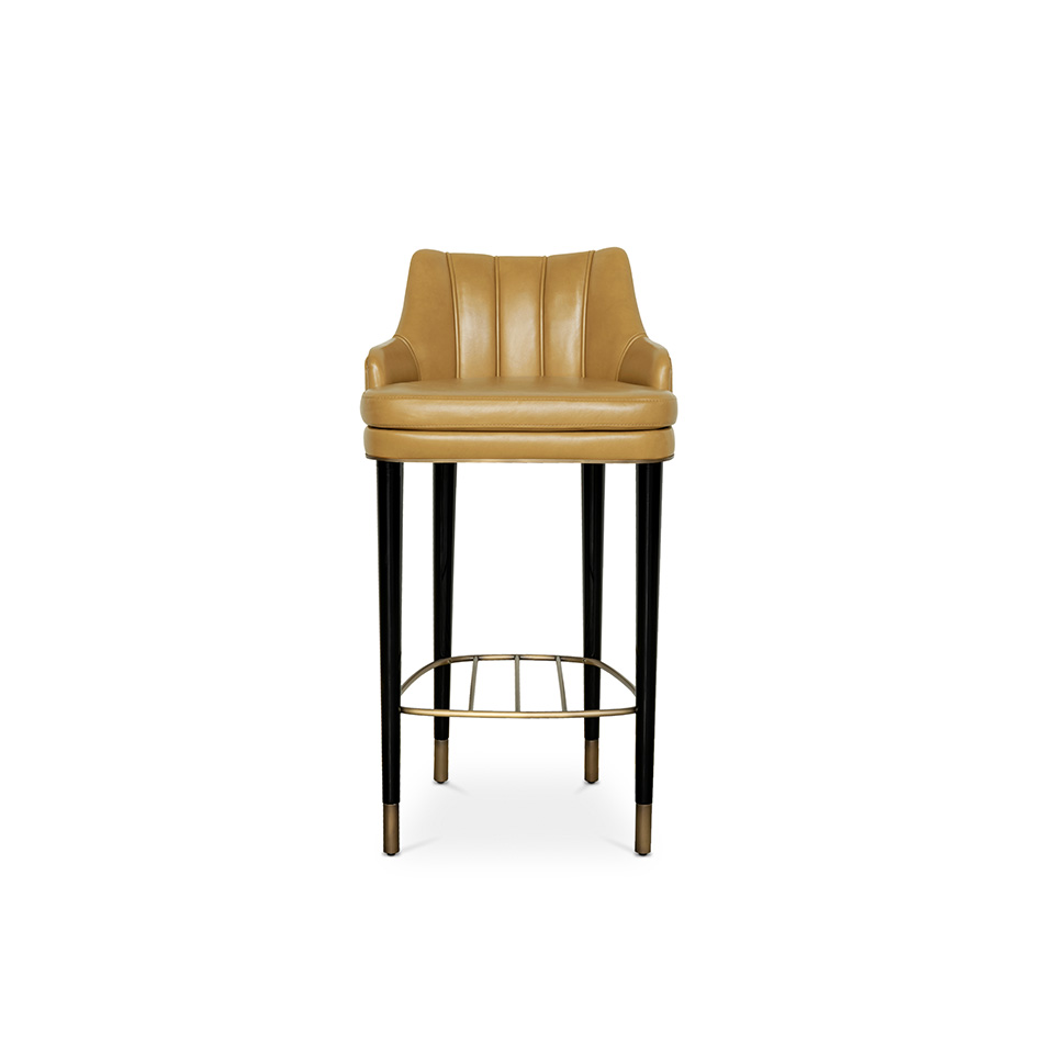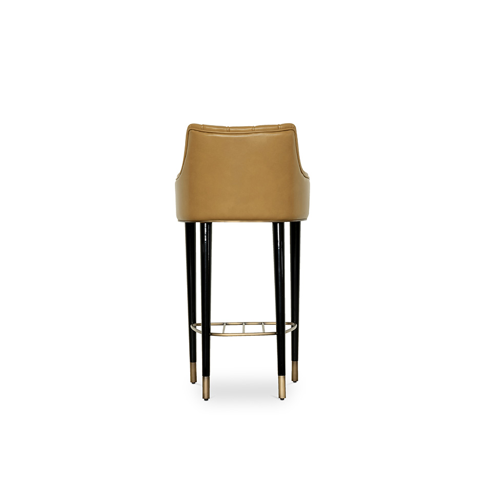 PLUM is a throwback to the past with a contemporary touch. With glossy black lacquered legs, this leather upholstered bar chair celebrates grandeur and opulence. Place it in bar design and this leather bar stool with backrest will instantly add a sophisticated feel.