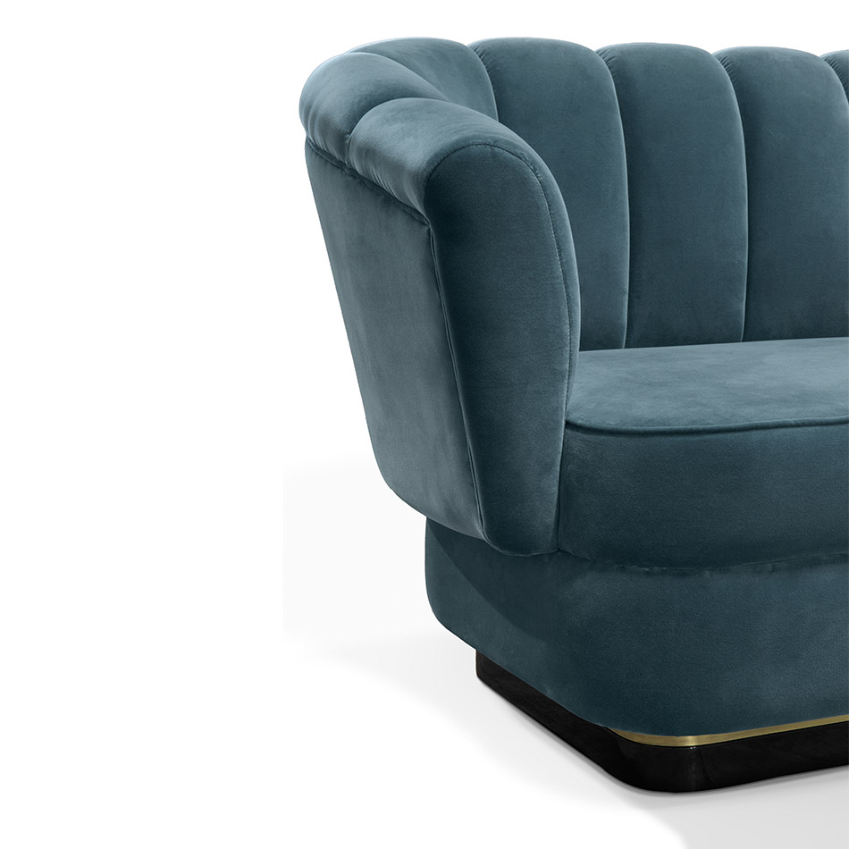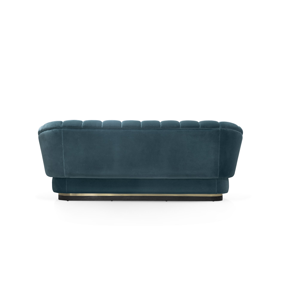 The ocean hides many mysteries and rare beauty. Its beauty was honoured through the exquisite design of POWEL Sofa. With a channel-tufted back, this fabric sofa features cotton velvet upholstery and a base in glossy black lacquer with aged brass details. The POWEL Green Velvet Sofa will add mystery and beauty to any home decor.