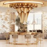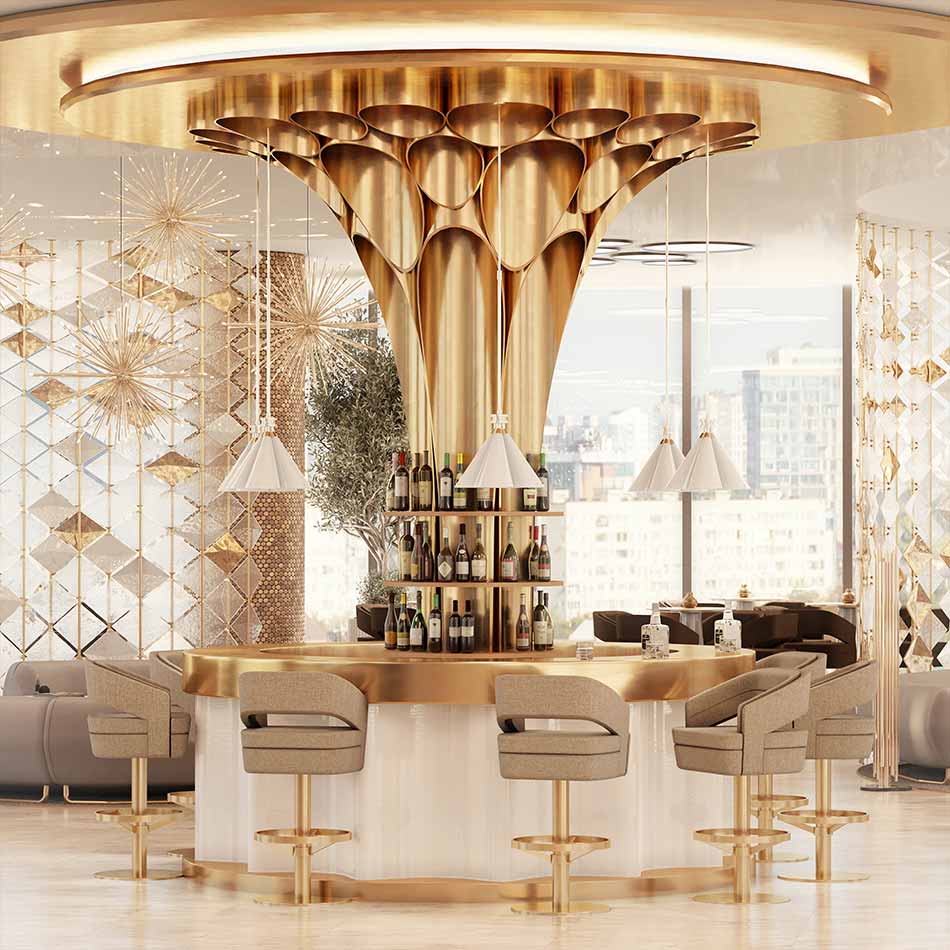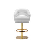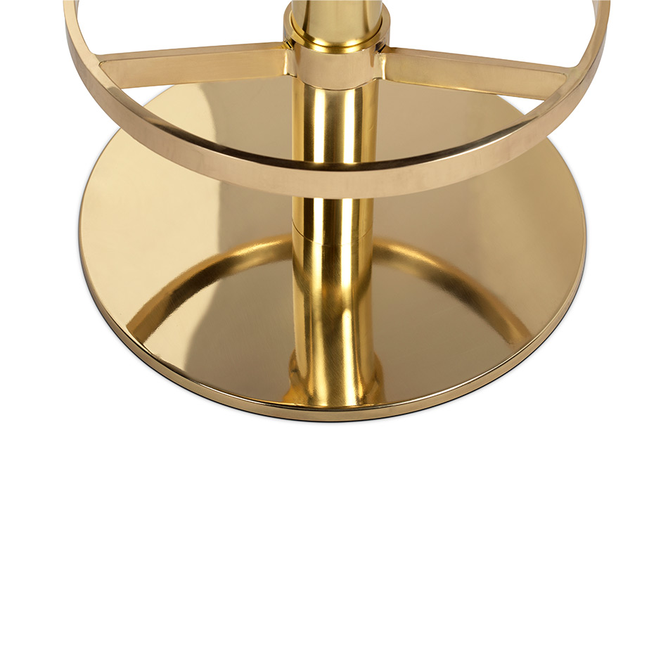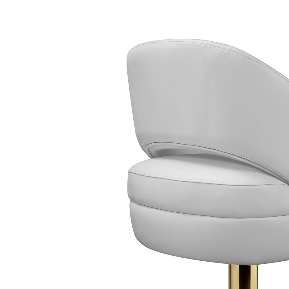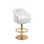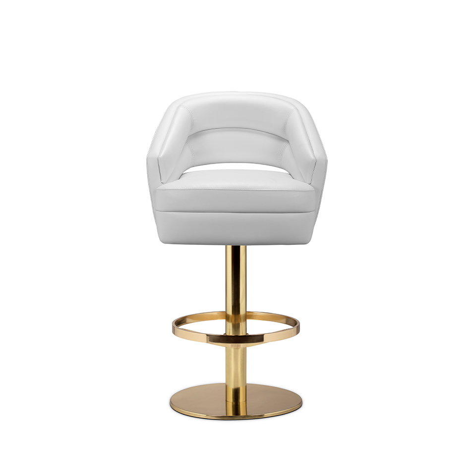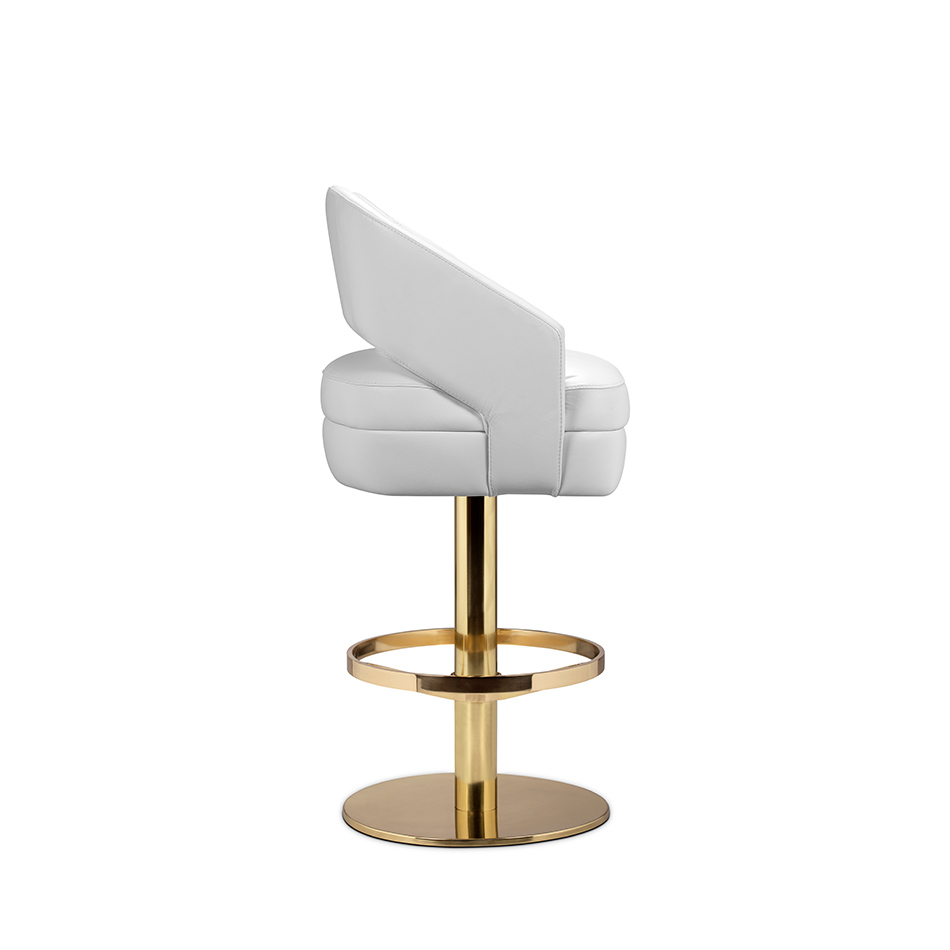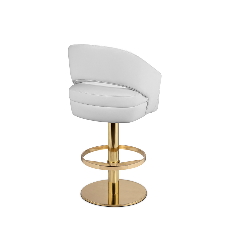 Adorn your living room with a sophisticated design piece that incorporates all of the mid-century elements. It delves into space-age aesthetics, being produced in smooth high-end fabrics mixed with polished metal. The base is round and swivels up to 360 degrees, providing comfort through the foot rail.