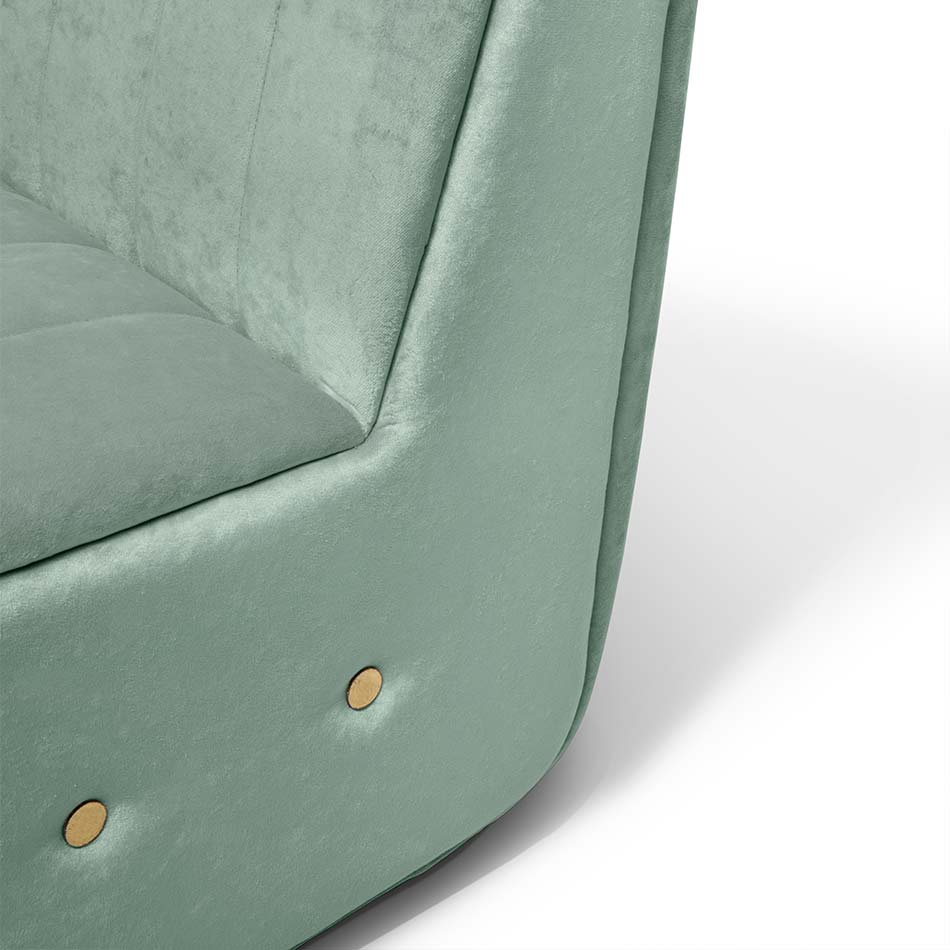 A particular bench seat sofa that draws inspiration from the aesthetics of Mid-century Modern Design. Stitched from the top to the bottom, with a base made of metal and button-tufted sides. The slight degree of reclining turns it into a lounge sofa providing much more than just style and comfort.
