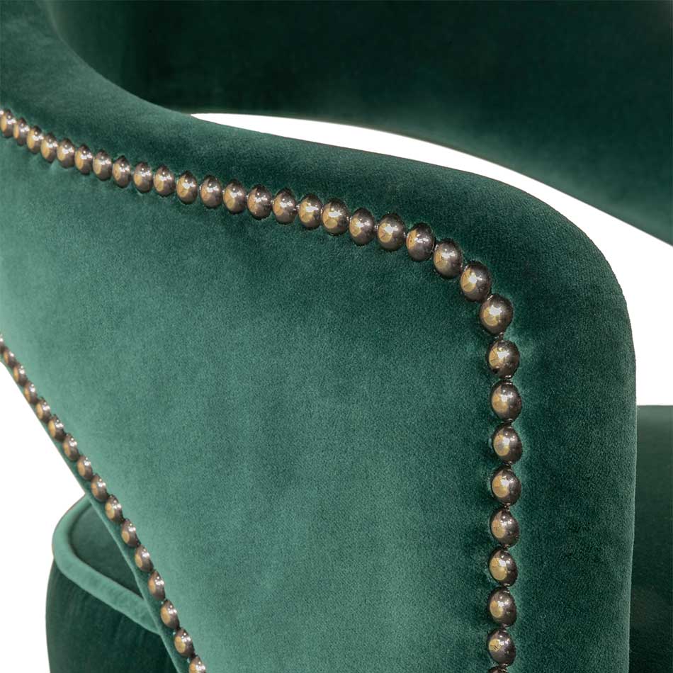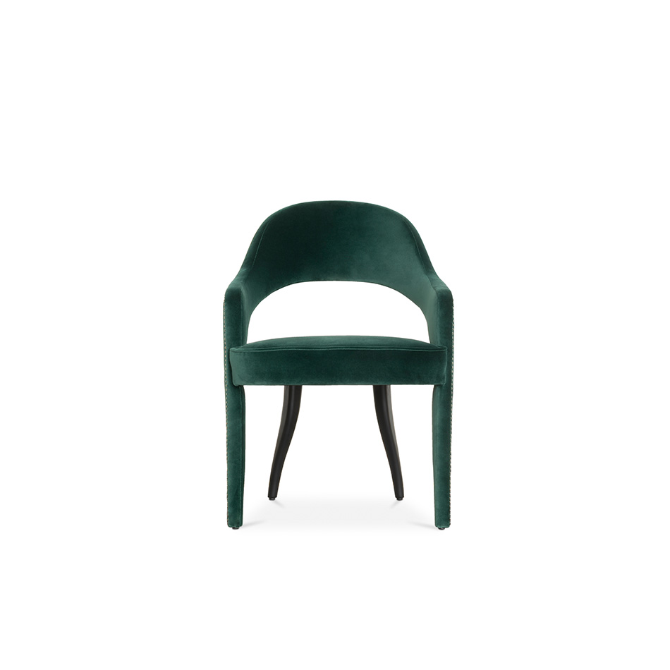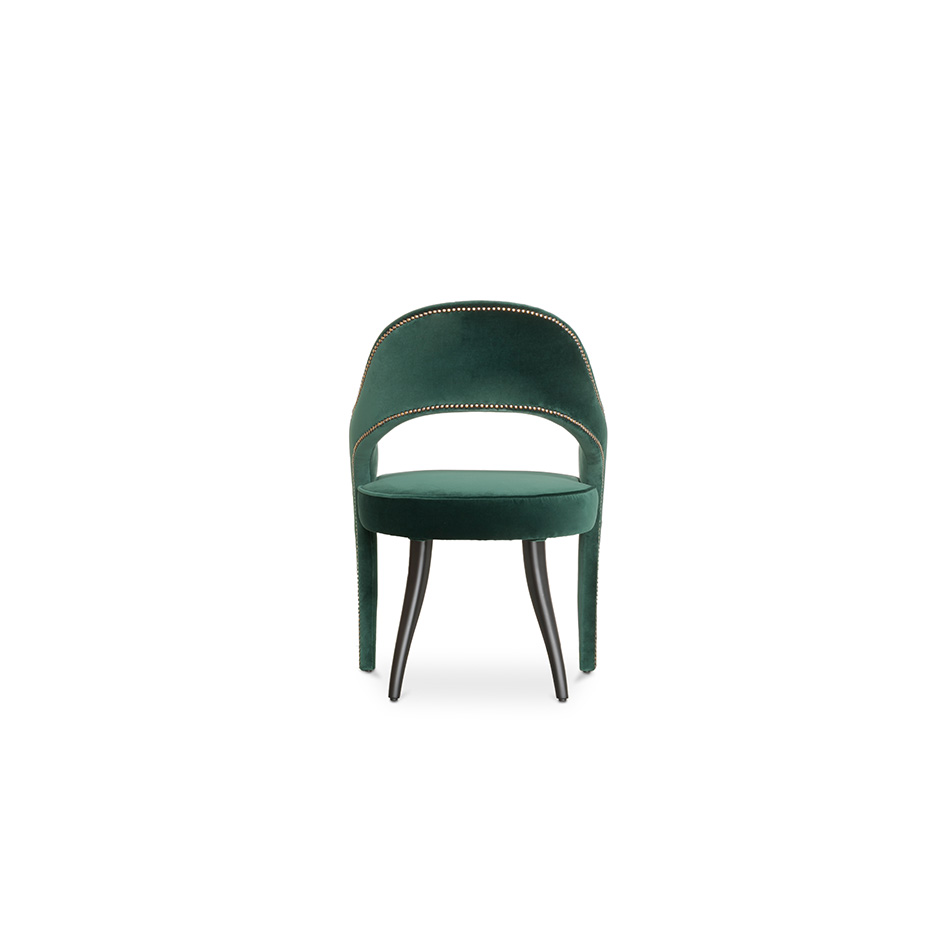 In Roman mythology, Tellus is the goddess of the Earth. TELLUS Dining Chair honours its deity aura. The velvet fabric, nailhead trim and back legs in matte lacquer add subtle sophistication, making this high back dining chair an elegant product able to fit in any modern dining room.