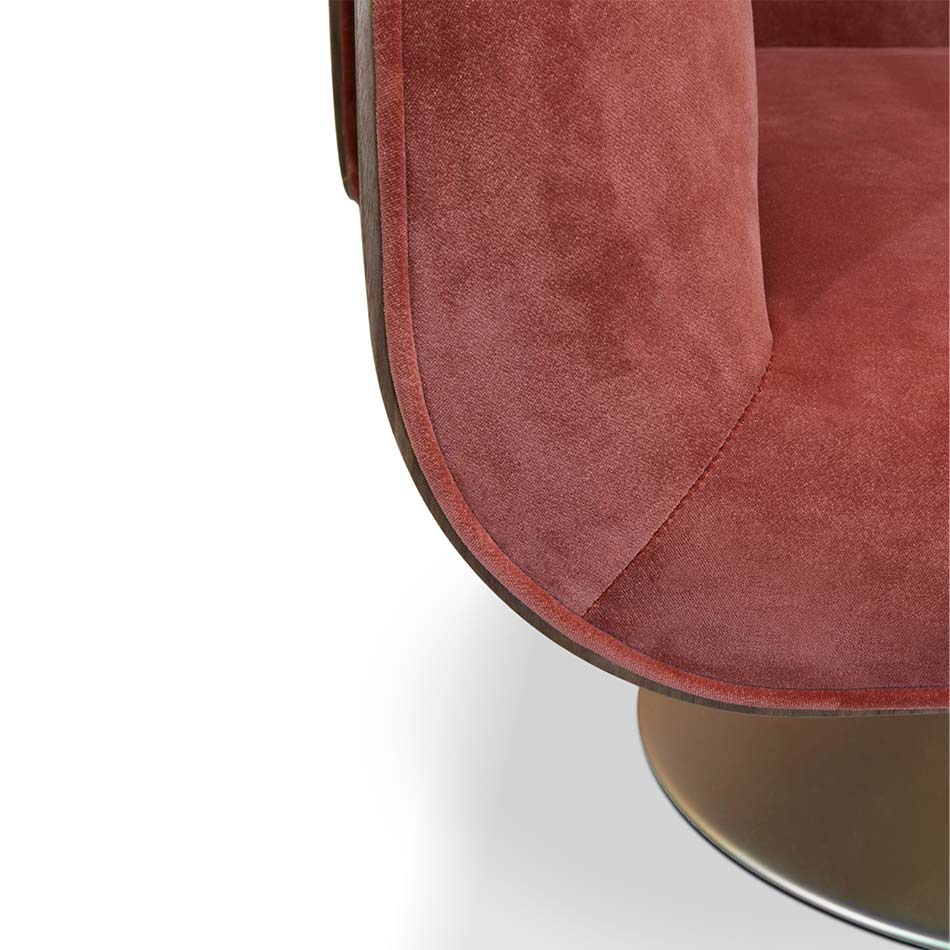 The Virginia armchair by Studiopepe is a statement piece with a unique character. Upholstered in high-quality velvet fabric, it offers both style and comfort. Its laid-back structure on a molded shell and golden polished brass base add a touch of luxury, making it a standout accent piece for any project.
