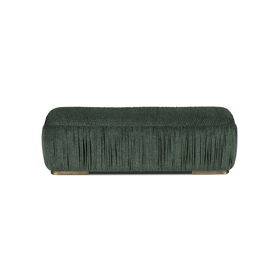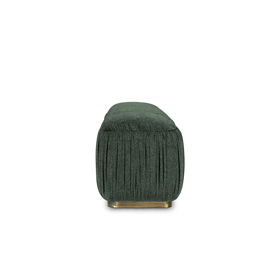 Often called the “Land of Castles”, Wales has some of the most impressive monuments of the Middle Ages. WALES Bench pays tribute to the country’s history. Upholstered in cotton velvet and with a footer in brushed aged brass matte, this upholstered bench brings elegance to any room it is in.