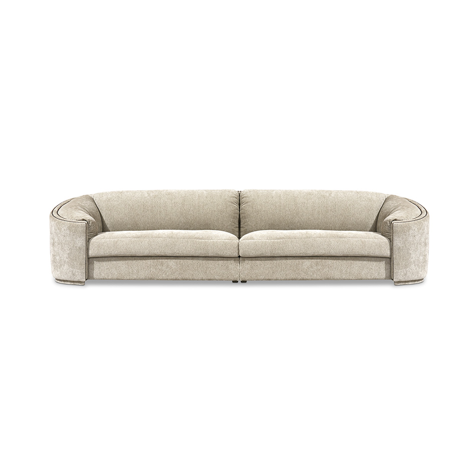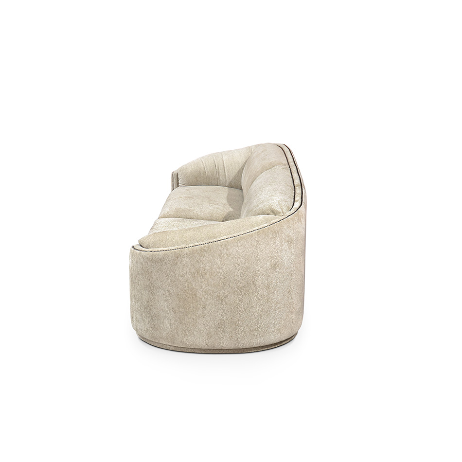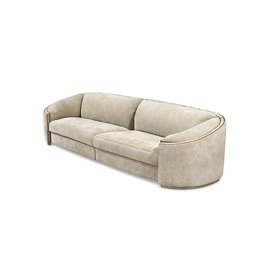 Often called the “Land of Castles”, Wales has some of the most impressive monuments of the Middle Ages. WALES II Sofa pays tribute to the country’s history. Upholstered in cotton velvet and with a base in matte vintage brass, this modern sofa features a Bronze nailhead trim that makes it even more elegant.