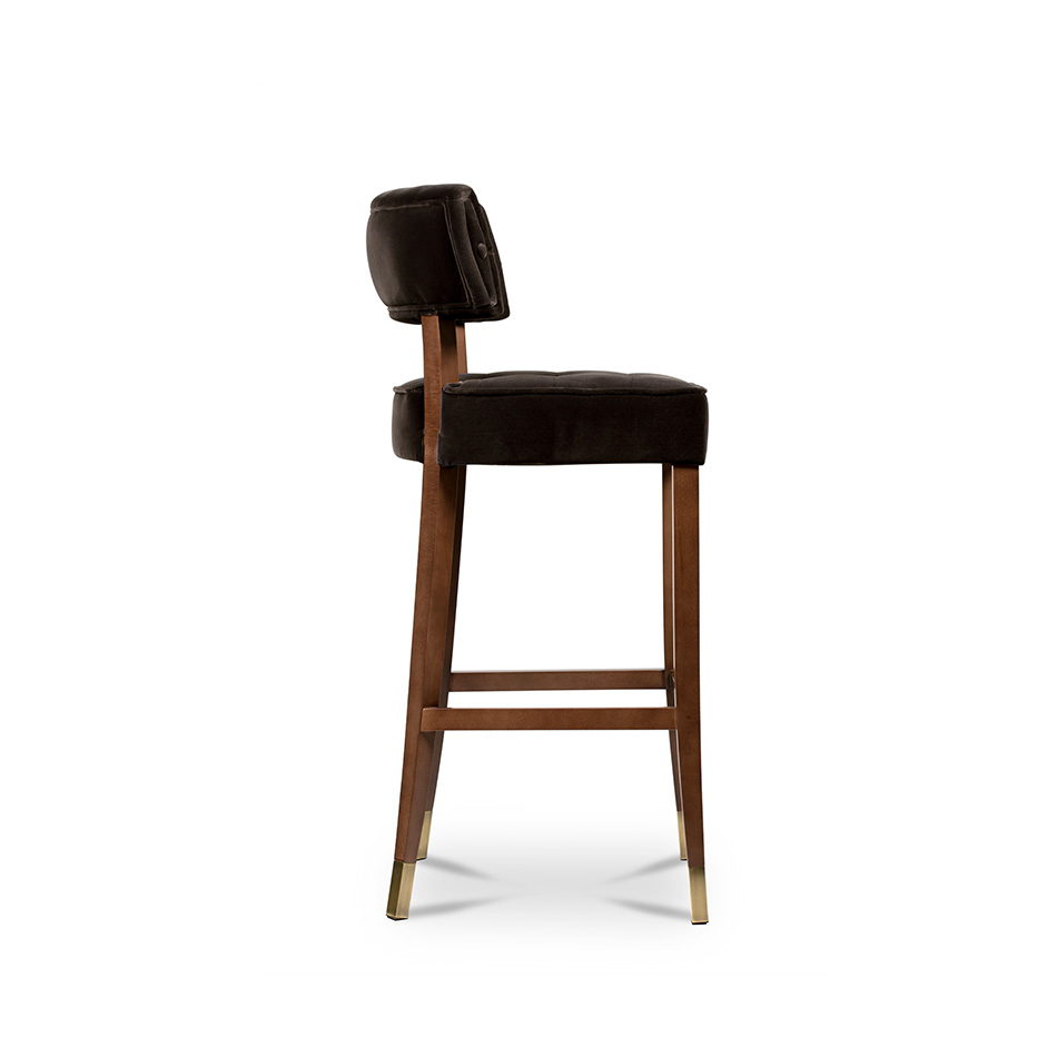 Zulu is the largest ethnic group in South Africa and the one who inspired the ZULU Bar Chair. Upholstered in brown cotton velvet, this button-tufted bar chair is filled with personality, making it the ideal high back velvet stool for any modern bar design.